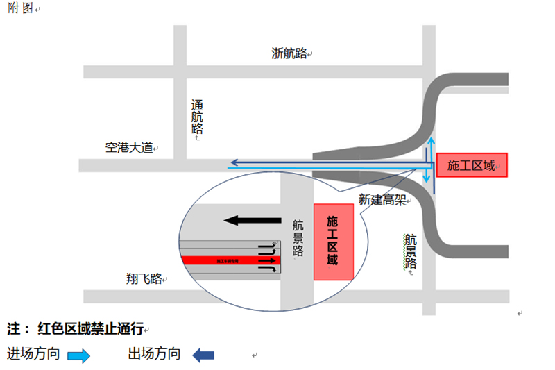 2019年5月30日起,本场空港大道(原1号路)(进机场方向)与航景路(原14号路)交叉口恢复通行(详见附图)。请过往机动车依照相关交通标志、标线谨慎行驶,服从现场管理人员指挥,共同确保机场交通的安全、有序、畅通。