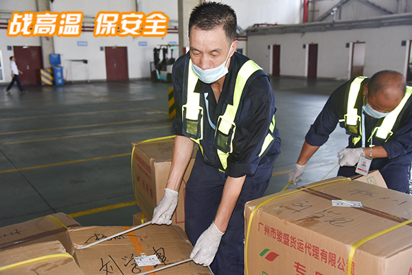8月17日中午,室外气温高达37度,在明晃晃的太阳炙烤下,物流公司进港仓库内的一车车货物都仿佛冒着热气,给原本就闷热的仓库再增温不少。中午是进港部最繁忙的时段之一,加上前期“8.8电商促销”,又逢时令水果、生鲜货物旺季运输,高温酷暑天网购量增加,放眼望去库区里摆放的货物满满当当,牵引车、叉车穿梭不息,戴着口罩和手套的装卸工师傅们不停地解挂网、搬托盘、分拣货物。