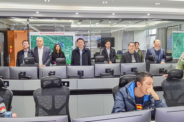 (图为遵义新舟机场党委副书记、工会主席刘东陪同郑向平一行参观机场指挥中心)
